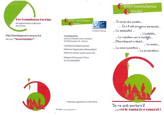 E’ attivo in sette strutture del territorio, il Servizio Centri Consulenza Giovani il cui coordinamento è affidato al distretto socio sanitario di via D’Annunzio (via D’annunzio, 29 a Firenze). A Firenze ma anche nella zona fiorentina sud est - a Scandicci, a Sesto Fiorentino e a Campi Bisenzio - e anche nella zona fiorentina sud est - a Pontassieve e a Grassina -, il servizio coordinato in rete, si presenta come il “luogo centrale” per accogliere, ascoltare e rispondere alle tematiche del mondo adolescenziale e giovanile, in ottica interdisciplinare-multiprofessionale.